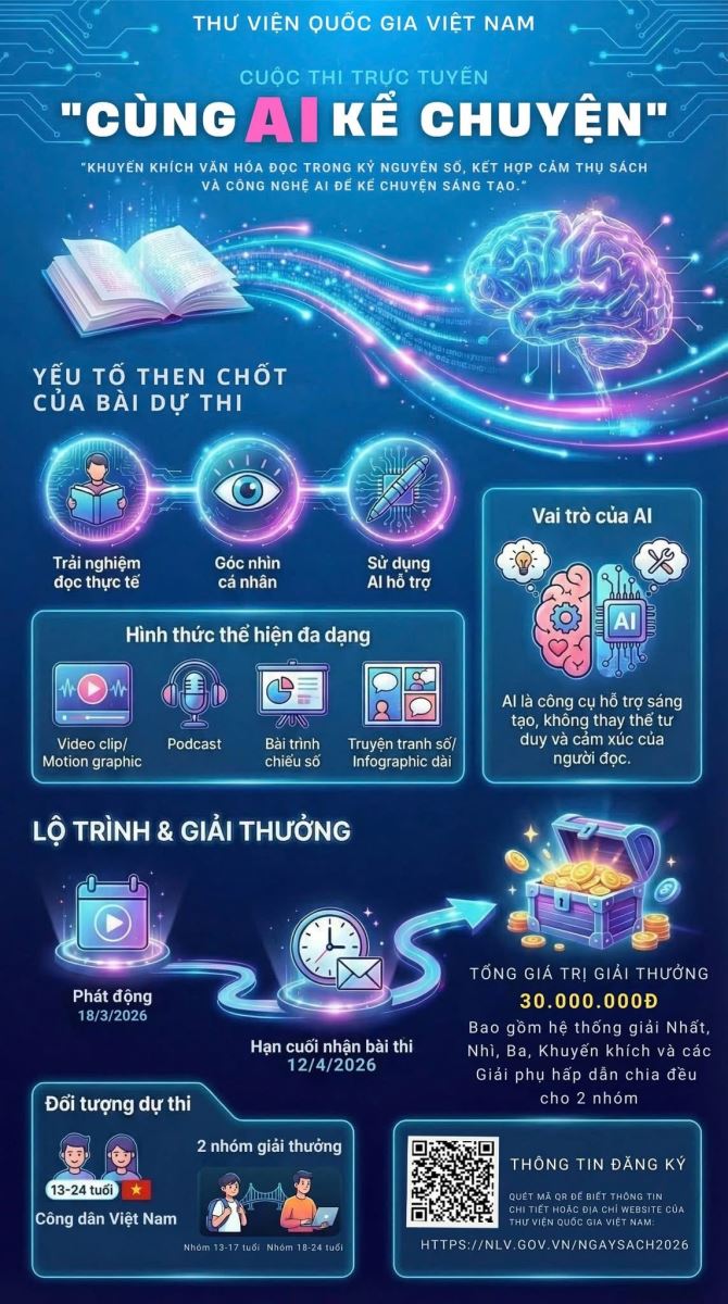 Đặc biệt, việc hưởng ứng, phát động tham gia cuộc thi “Cùng AI kể chuyện” với chủ đề “Mạch tri thức – Từ trang sách đến không gian số” do Thư viện Quốc gia Việt Nam tổ chức đã mở ra hướng tiếp cận mới, kết hợp giữa đọc sách truyền thống và công nghệ trí tuệ nhân tạo. Hoạt động này không chỉ thể hiện khả năng thích ứng với xu thế công nghệ mà còn góp phần nâng cao năng lực khai thác, xử lý và sáng tạo tri thức của người học.